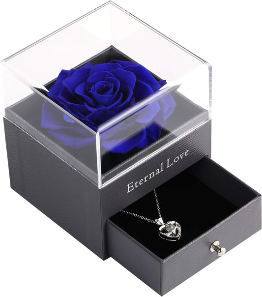 Mothers Day Flower Gifts for Her, Preserved Real Flower Rose with Silver-Tone Heart Necklace I Lo...