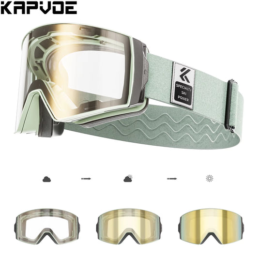 KAPVOE Photochromic Anti-Fog Skiing Goggles Outdoor Skiing Sports Glasses Winter Skating Snowboar...