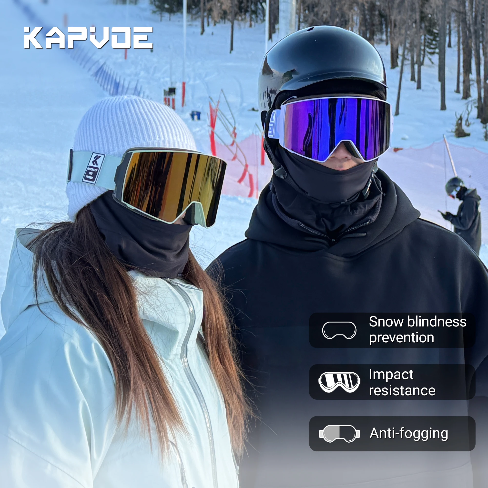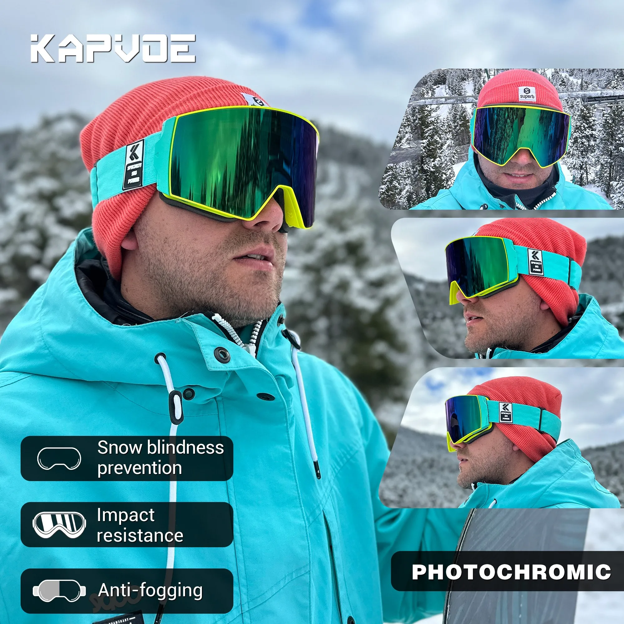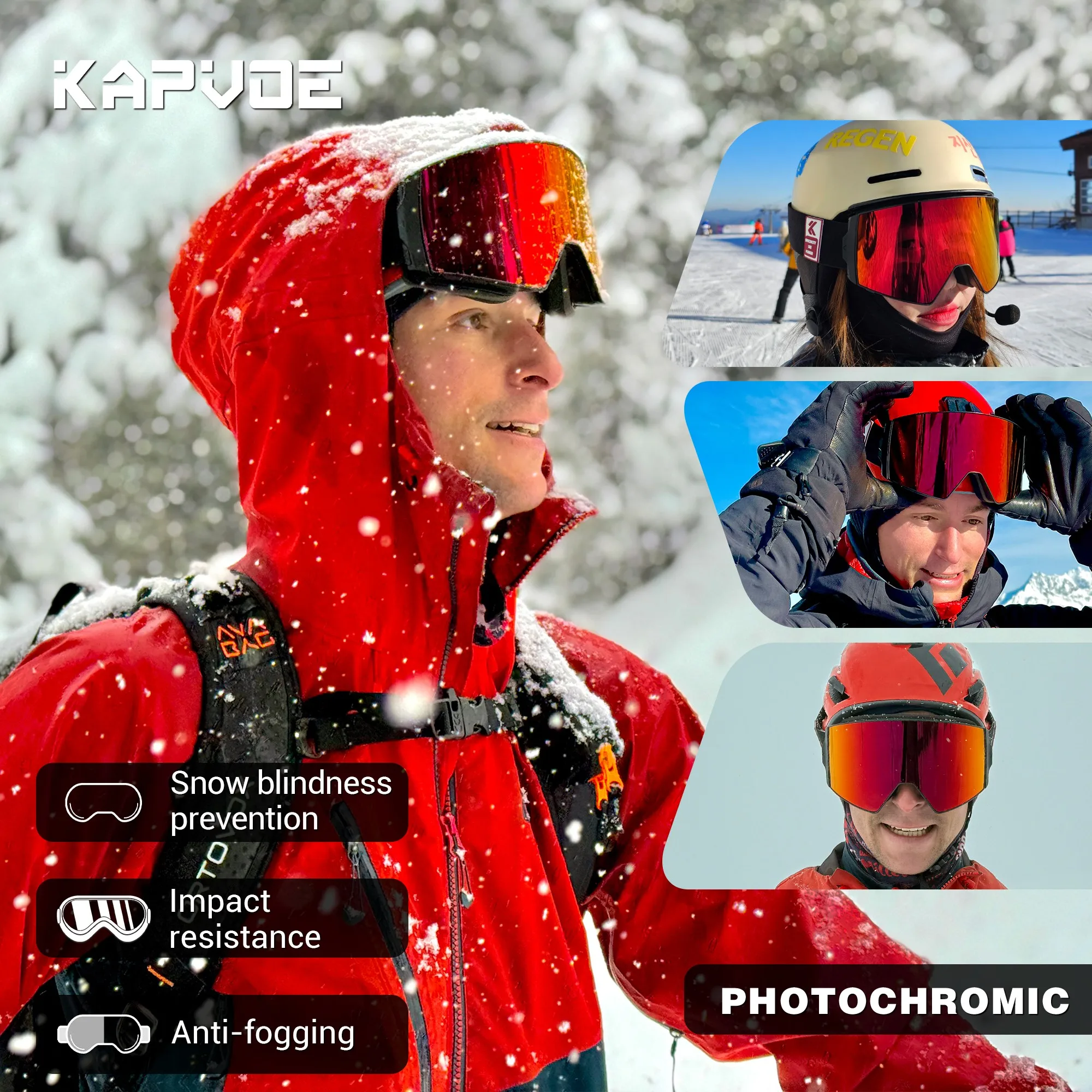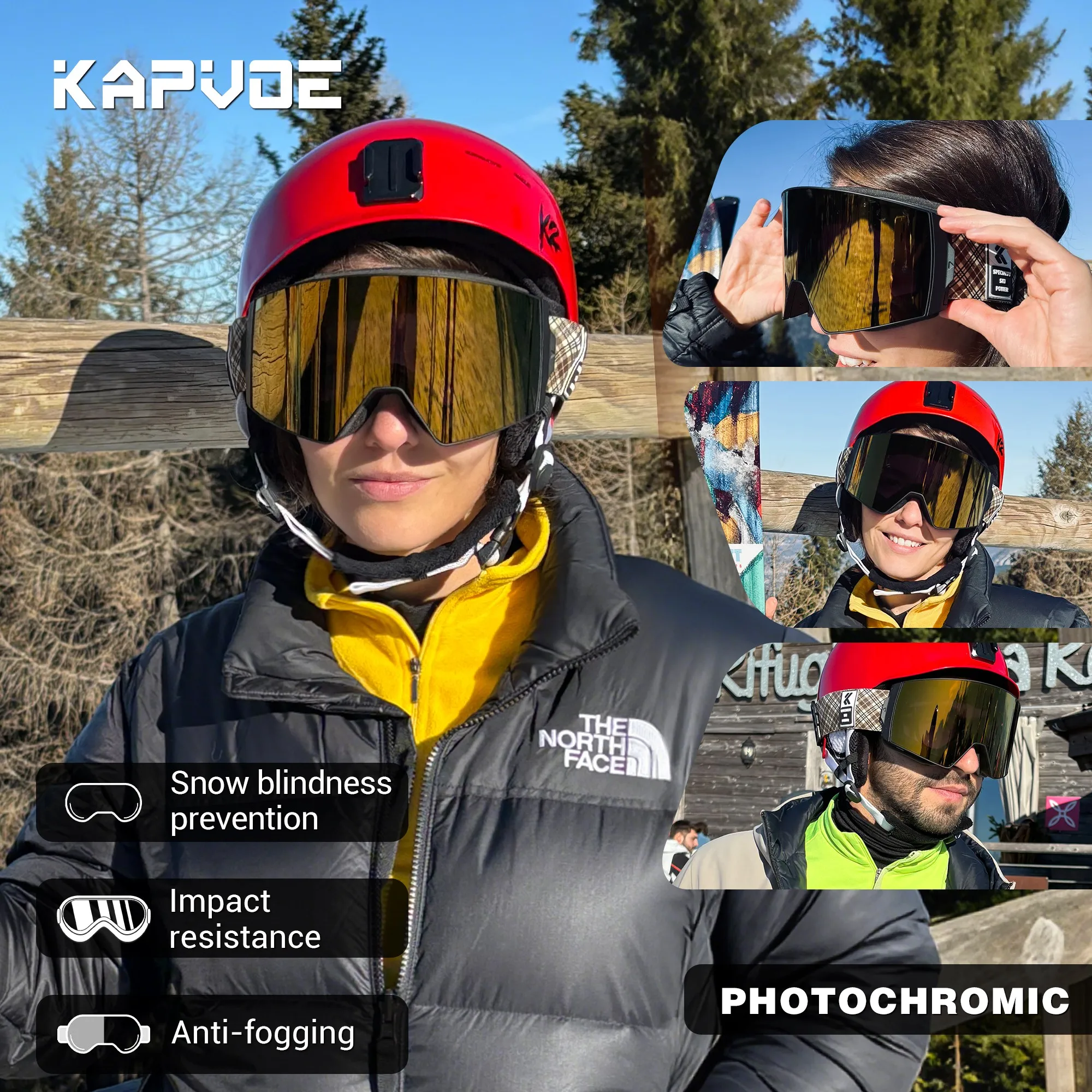 KAPVOE Photochromic Anti-Fog Skiing Goggles Outdoor Skiing Sports Glasses Winter Skating Snowboard Equipment Snowmobile Goggles